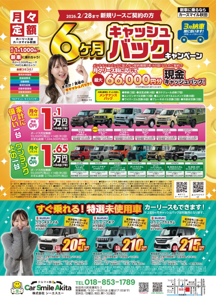 2026.02月のチラシ【6ヶ月キャッシュバックキャンペーン】